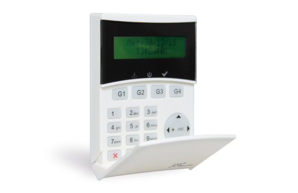 ManuelClavier lcd à 32 caractères Clavier LCD avec afficheur à cristaux liquides rétroéclairé à 32 caractères sur deux lignes. 3 LED de signalisation. Volet de protection. Touches programmables pour saisie rapide.